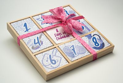 Celebrate each night with a sweet surprise. Peel back the tabs to reveal 8 hidden treats, and enjoy classic gelt and a dreidel in the center. A fun, elegant, and meaningful way to bring added joy to every candle-lighting moment.